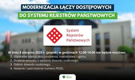 Ważna informacja! Modernizacja łączy dostępowych do Systemu Rejestrów Państwowych - Piątek 08.08.2025
