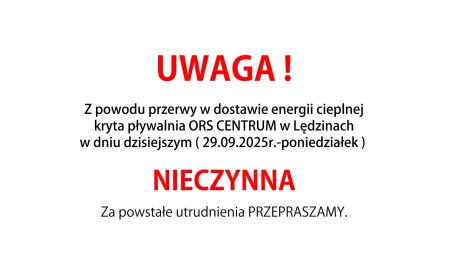 UWAGA! Z powodu przerwy w dostawie energii cieplnej kryta pływalnia ORS CENTRUM w Lędzinach w dniu dzisiejszym (29.09.2025 r. - poniedziałek) NIECZYNNA.
