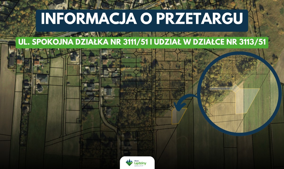 Wadium należy wpłacić do 29 września 2025 r. na rachunek bankowy Urzędu Miasta Lędziny (ING Bank Śląski SA Katowice, nr konta 04 1050 1214 1000 0024 1111 9239), z dopiskiem: „wadium na działkę nr 3111/51 wraz z udziałem w działce nr 3113/51, ul. Spokojna”.