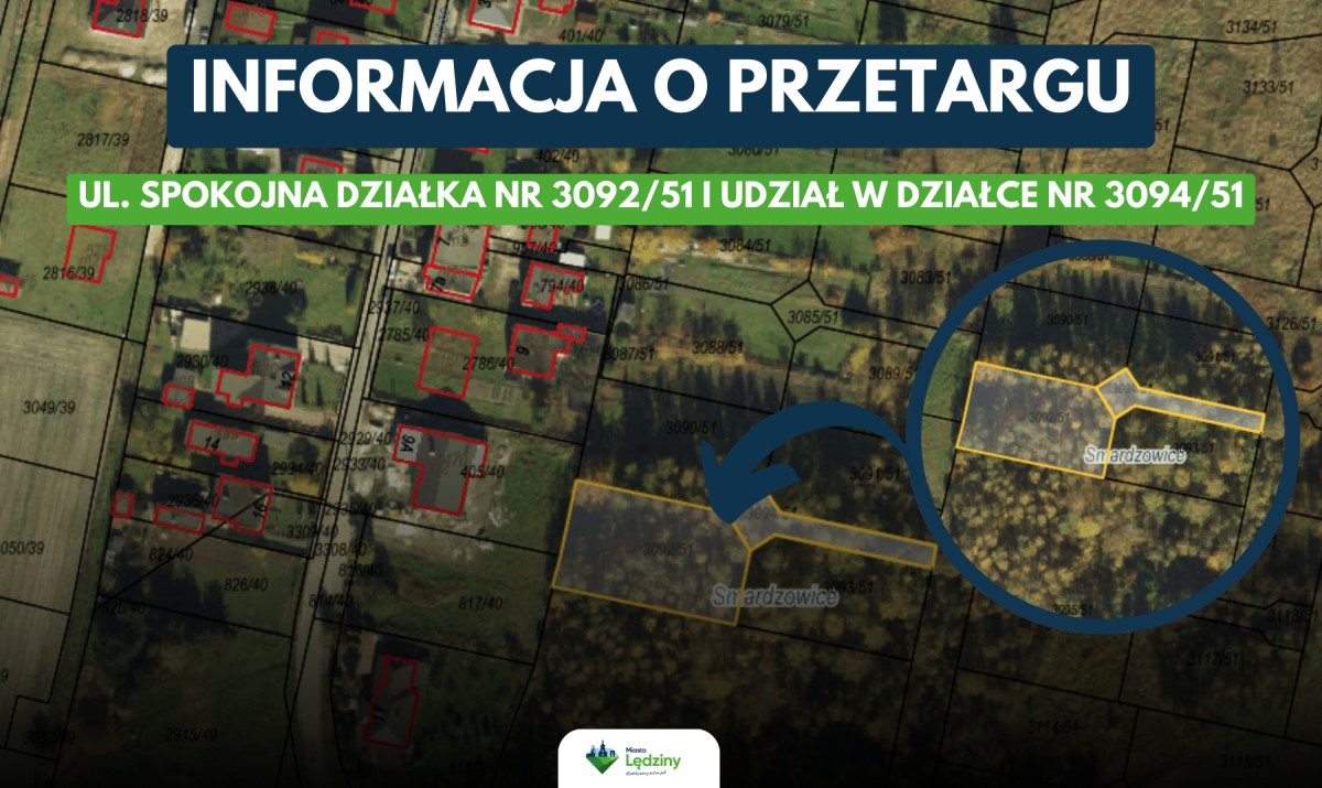 II przetarg na sprzedaż działki nr 3092/51 i udziału w działce nr 3094/51 przy ul. Spokojnej w Lędzinach