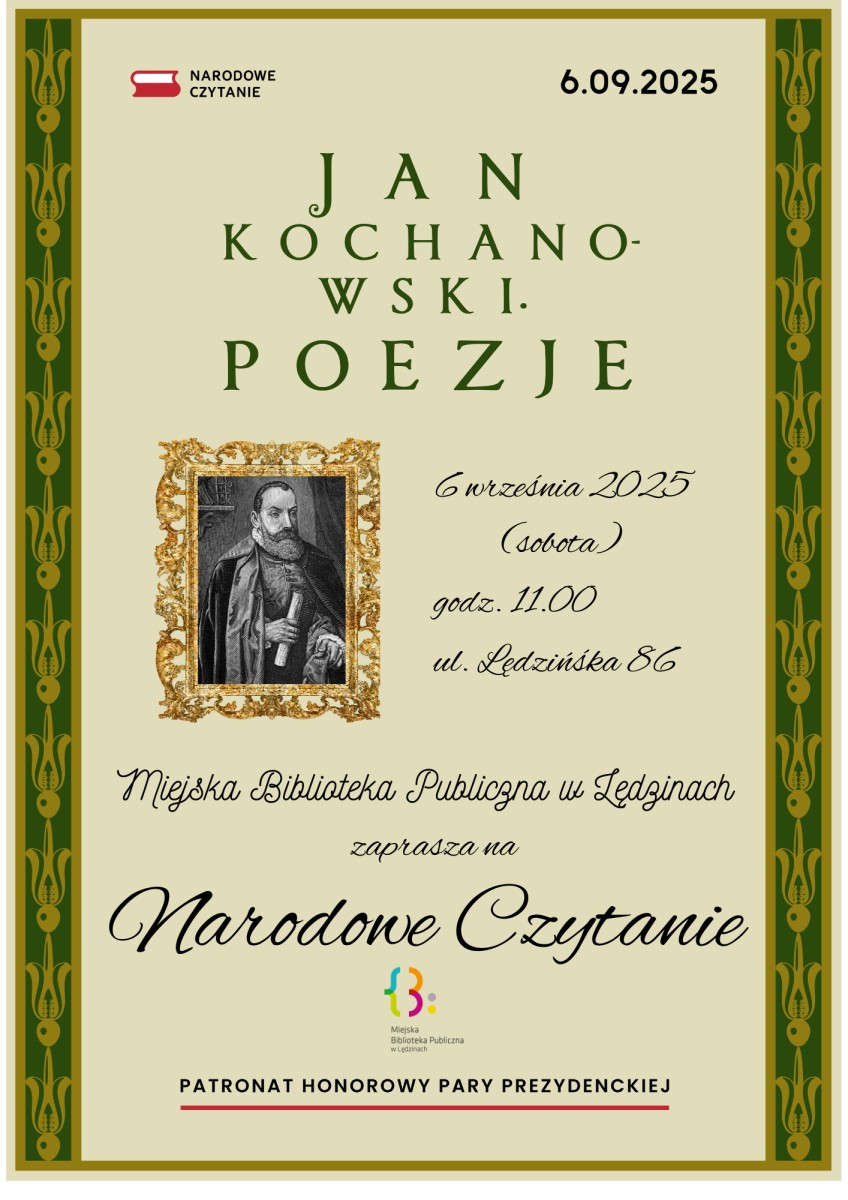 W tym roku w całej Polsce czytane będą utwory Jana Kochanowskiego, jednego z najwybitniejszych poetów epoki renesansu. Jego twórczość, pełna refleksji nad życiem, naturą i losem człowieka, niezmiennie inspiruje i zachwyca kolejne pokolenia czytelników.