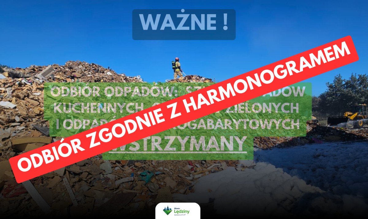 W związku z przywróceniem stanu technicznego urządzeń na terenie firmy MASTER-ODPADY I ENERGIA Sp. z o.o. w Tychach informujemy, iż od dnia 20.08.2025 r. z terenu Gminy Lędziny odpady będą odbierane zgodnie z hamonogramem.