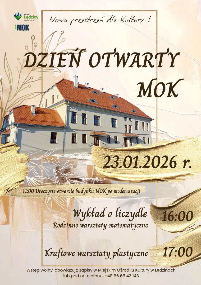 Po zakończonym remoncie budynku przy ul. Hołdunowskiej 39, Miasto Lędziny zaprasza mieszkańców na uroczyste otwarcie Miejskiego Ośrodka Kultury po modernizacji. Wydarzenie odbędzie się 23 stycznia 2026 roku i będzie okazją do zapoznania się z odnowioną przestrzenią, która w najbliższych latach ma sprzyjać dalszemu rozwojowi życia kulturalnego oraz poszerzeniu oferty zajęć dla mieszkańców w różnym wieku.