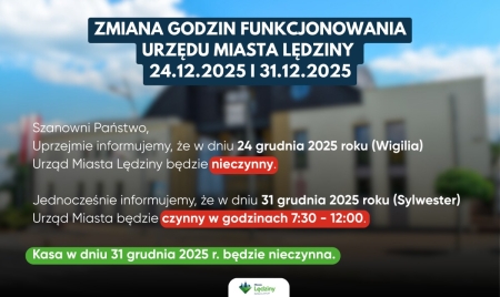 zmiana godzin funkcjonowania urzędu miasta Lędziny 24.12.2025 i 31.12.2025