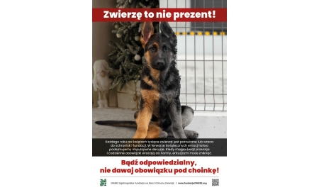 Święta to niezwykły czas… W tym magicznym okresie wiele osób marzy, by zaskoczyć bliskich czymś naprawdę wyjątkowym. Pojawia się też pokusa, by podarować pod choinkę psa, kota czy królika. Niestety, nie każdy zdaje sobie sprawę, jak wielka odpowiedzialność wiąże się...