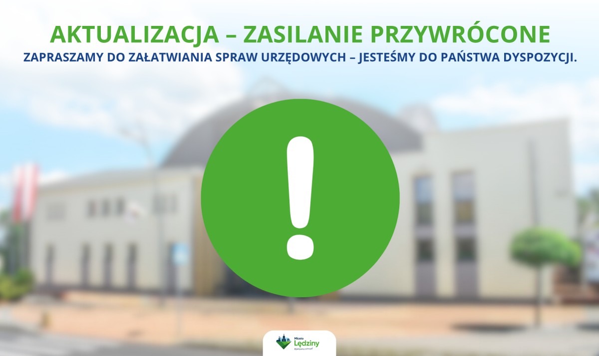 uprzejmie informujemy, że w Urzędzie Miasta Lędziny wystąpiła awaria zasilania, w wyniku której działalność Urzędu jest obecnie ograniczona.