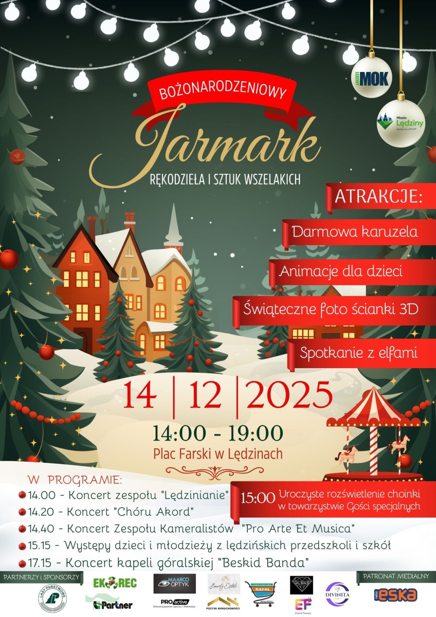 Miasto Lędziny oraz Miejski Ośrodek Kultury serdecznie zapraszają mieszkańców na coroczny Bożonarodzeniowy Jarmark Rękodzieła i Sztuk Wszelakich, który odbędzie się 14 grudnia 2025 roku na Placu Farskim. W godzinach 14:00–19:00 plac wypełni się atmosferą świątecznej magii, zapachem tradycyjnych przysmaków oraz wyjątkowymi stoiskami lokalnych twórców.
