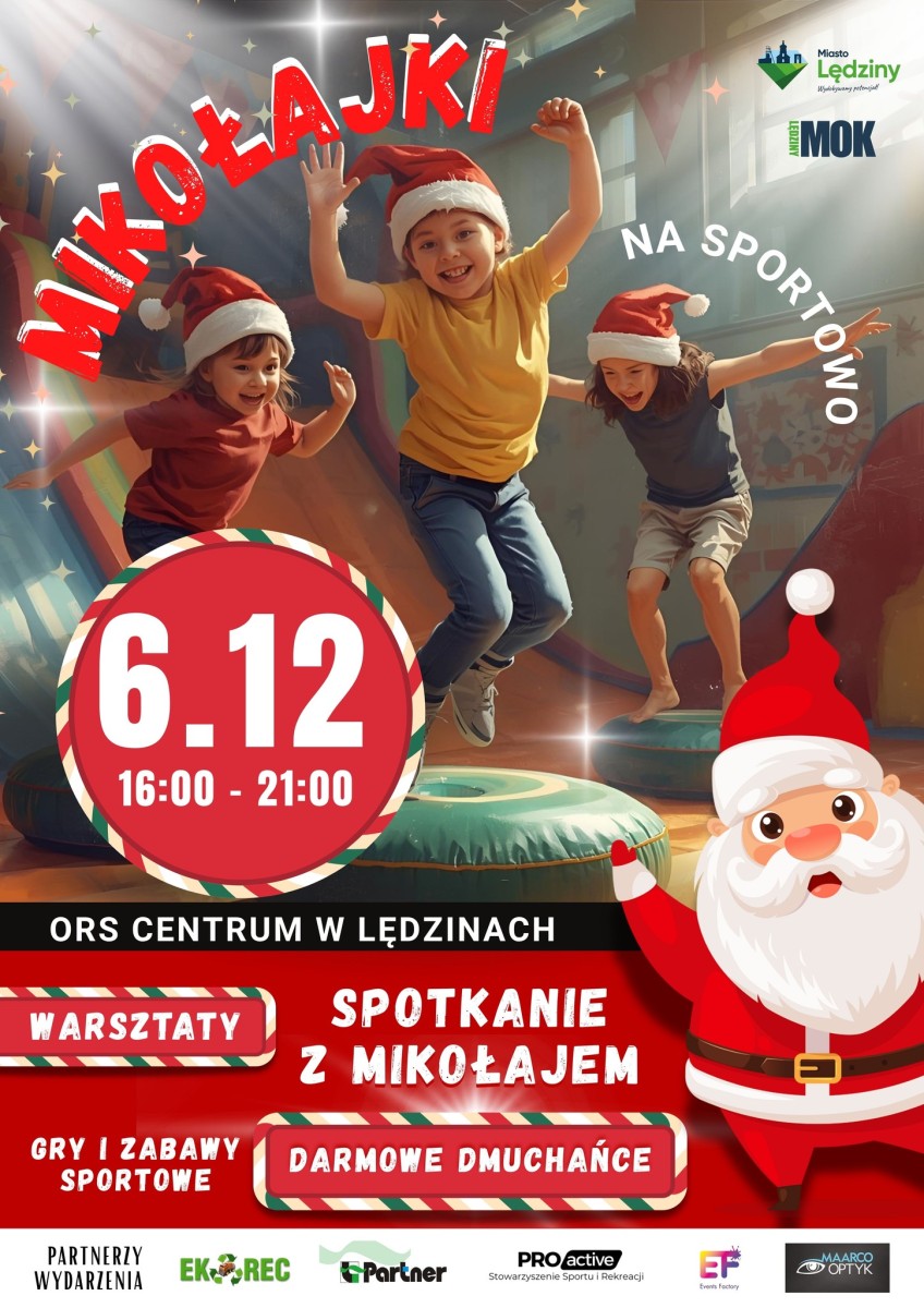 Miasto Lędziny oraz Miejski Ośrodek Kultury zapraszają wszystkie dzieci wraz z rodzinami na wyjątkowe wydarzenie „Mikołajki na sportowo”, które odbędzie się 6 grudnia 2025 r. w ORS Centrum w Lędzinach. W godzinach 16:00–21:00 na uczestników czekać będzie moc atrakcji, aktywności i świątecznej radości.