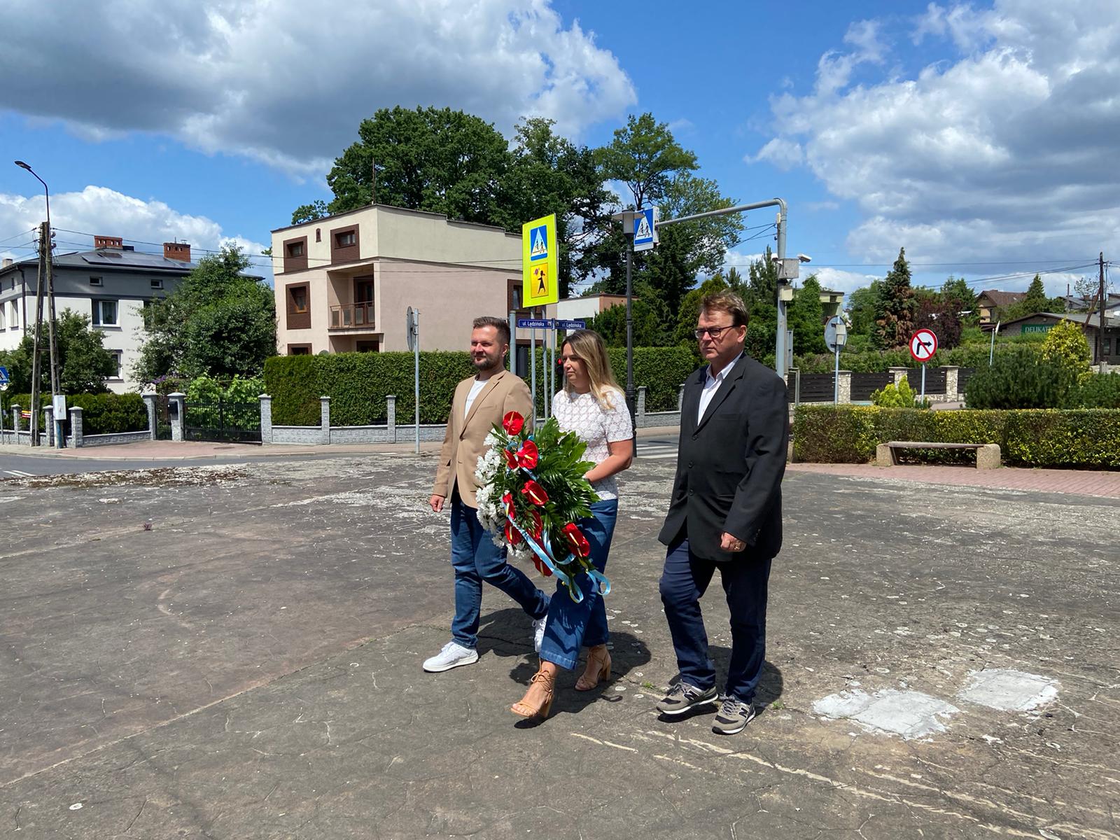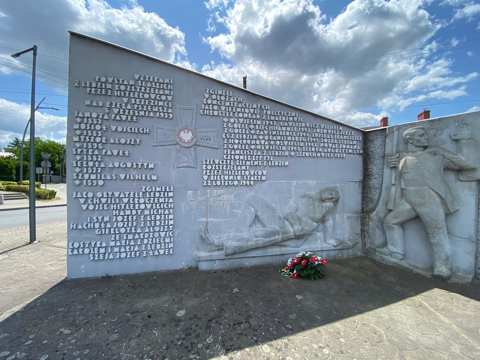 W hołdzie uczestnikom Powstań Śląskich, Zastępca Burmistrza Miasta Lędziny Krzysztof Magosz, Skarbnik Miasta Kinga Drabik oraz Przewodniczący Rady Miasta Edward Urbańczyk złożyli kwiaty pod Pomnikiem Weteranów Powstań Śląskich w Lędzinach.