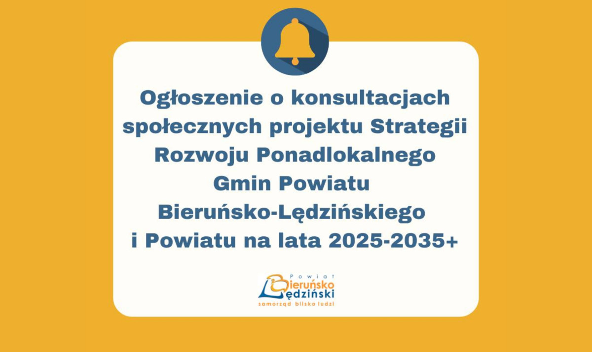 Ogłoszenie o konsultacjach społecznych projektu Strategii Rozwoju Ponadlokalnego Gmin Powiatu Bieruńsko-Lędzińskiego i Powiatu na lata 2025-2035